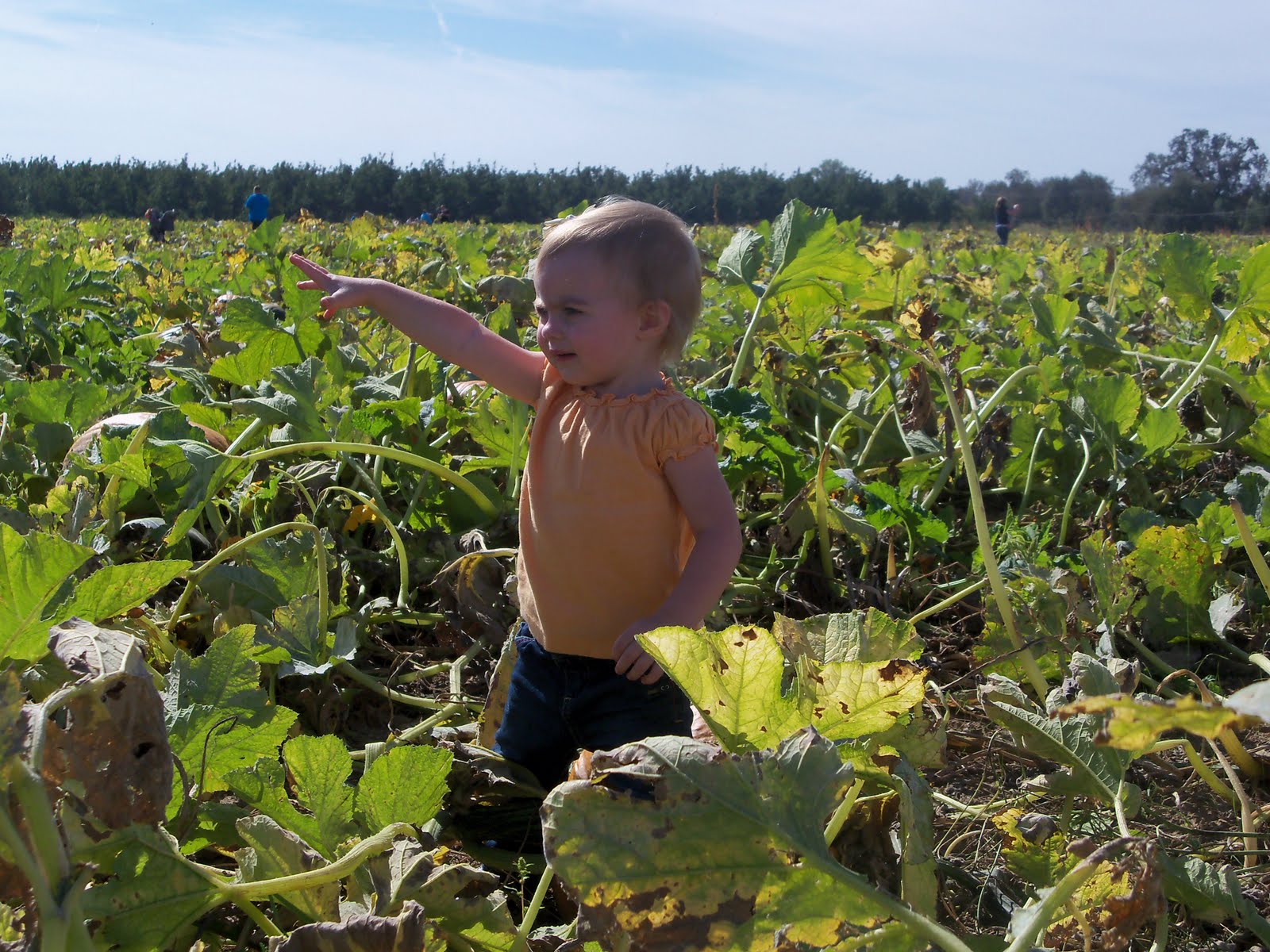 Out in the pumpkin patch. She was not very cooperative for pictures this year. I thought that part would get easier as she got older, but I guess not.